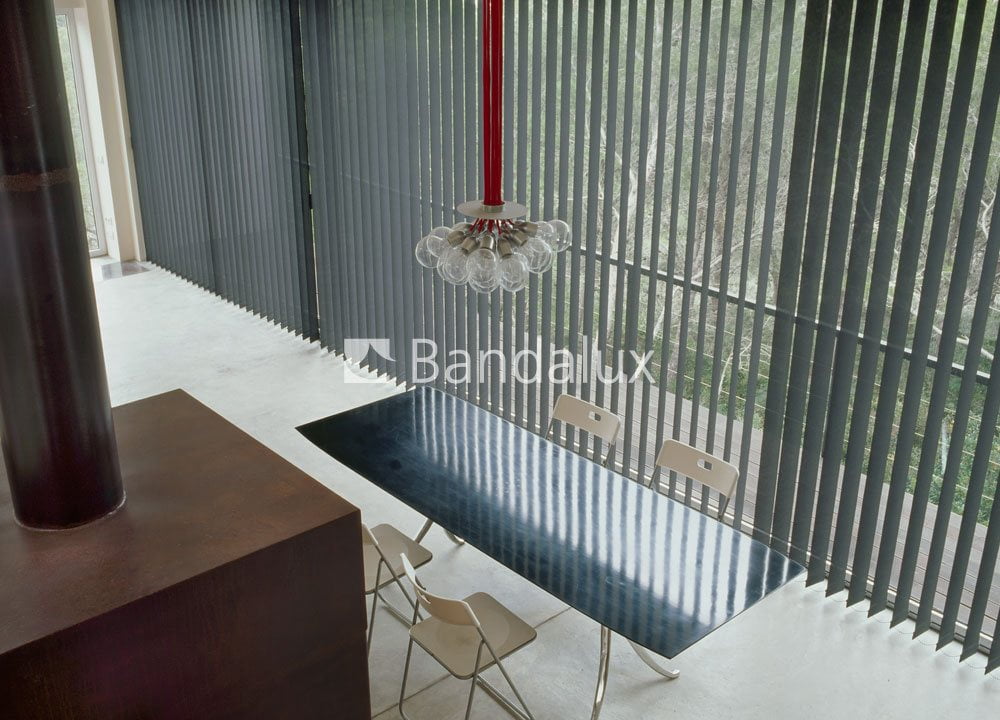 La cortina Vertical de lamas de lamas es una excelente opción para grandes ventanales, o de medidas hasta suelo. El control de la luz, su elegancia y sus posibilidades decorativas que nos ofrece este sistema, lo hace ideal tanto para la oficina como para el hogar, pudiendo escogerse diferentes anchos de lamas.